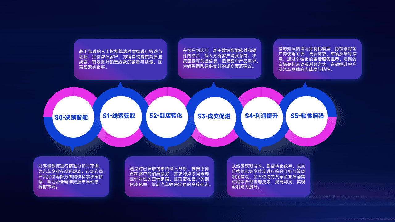 通过拓宽潜在客户来源、、、、优化线索分配并提高到店转化率,,以增强销售效率。。。。同时,,利用线索数据不断优化分析模型,,,有效提升转化率,,,扩大营销影响力。。。。